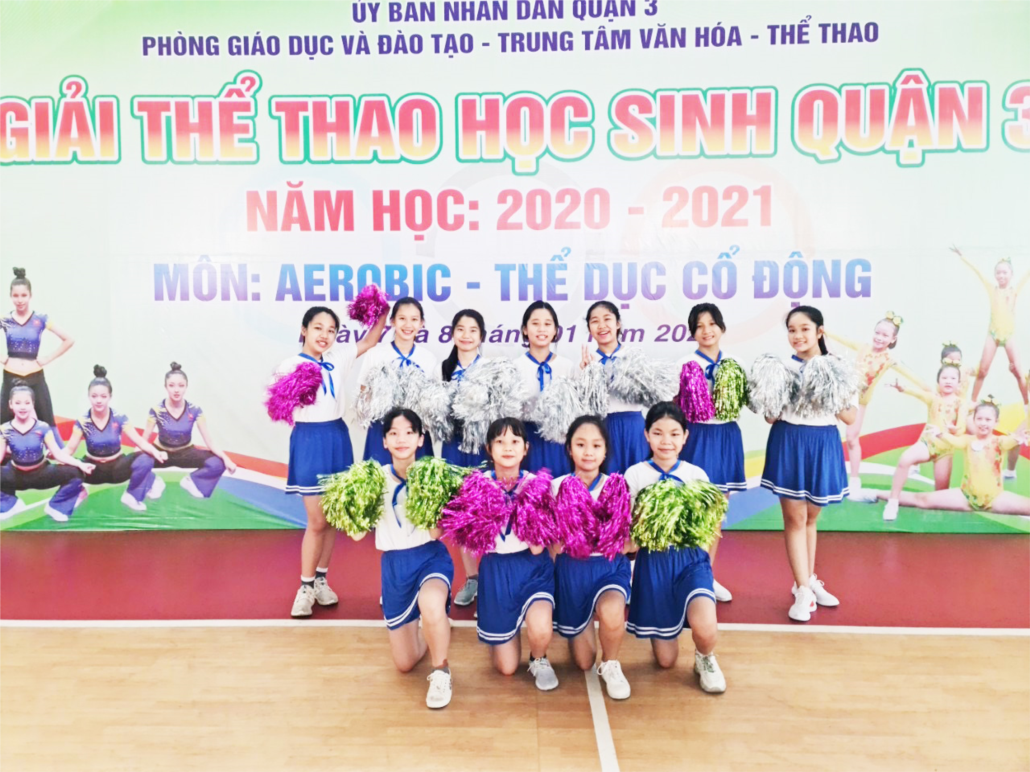 Các em học sinh dự thi Aerobic - Thể dục cổ động học sinh Quận 3 năm học 2020 - 2021